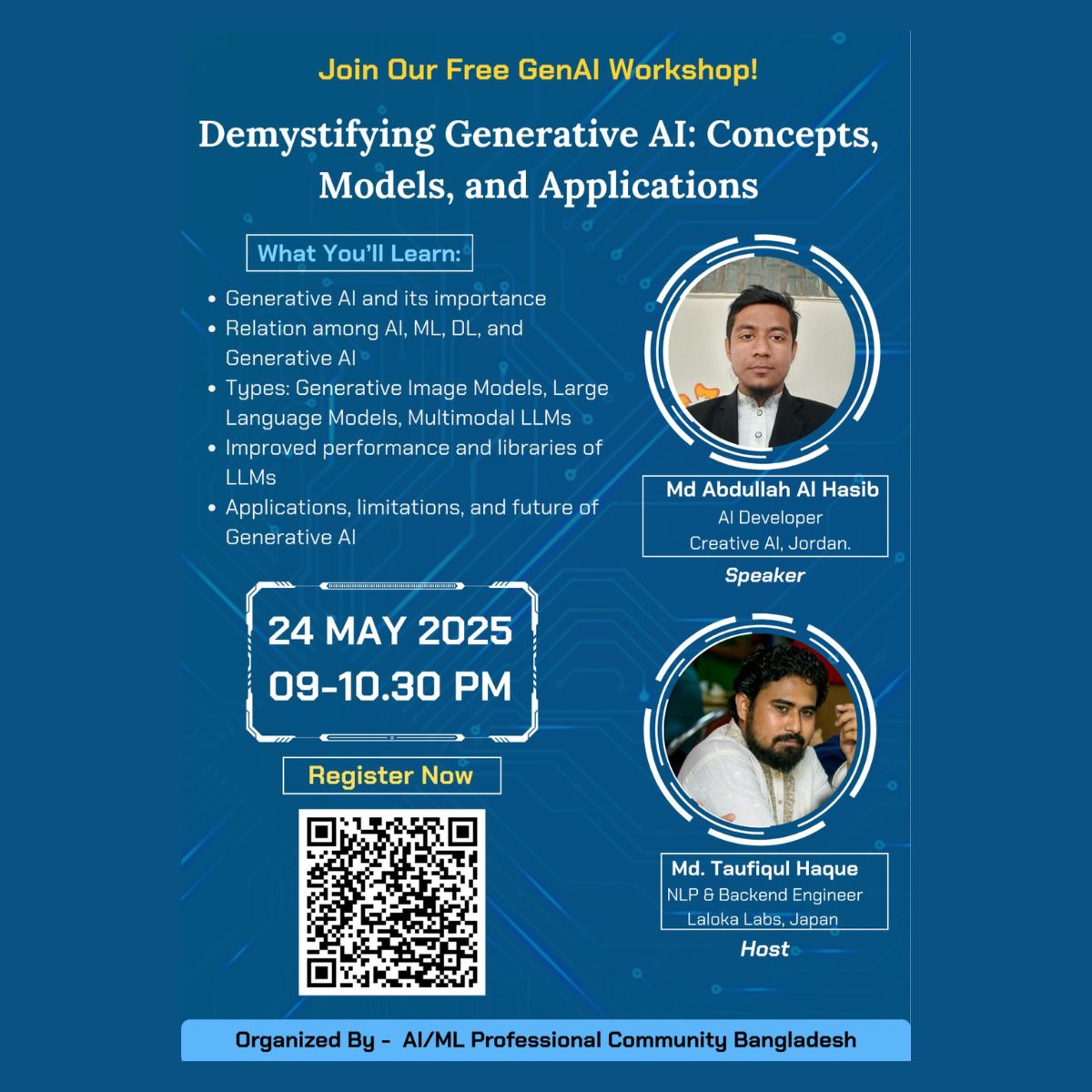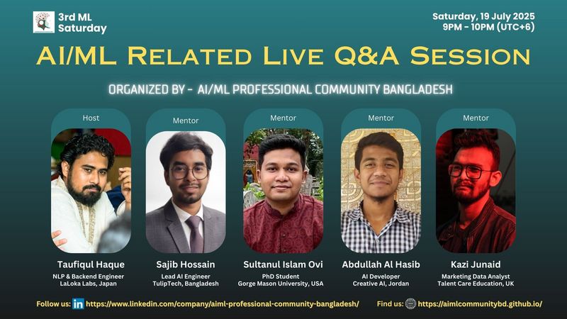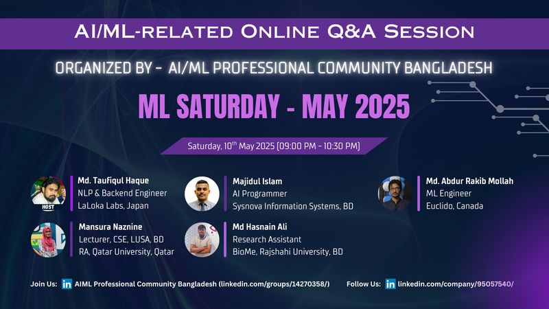 AIML Professional Community Bangladesh is a volunteer-driven, non-profit initiative aimed at building a stronger AI/ML ecosystem in the country. We believe in open access to knowledge, mentorship, and collaboration—free for all. Our mission is to connect learners, professionals, and enthusiasts in a space that encourages continuous learning and community-driven growth.